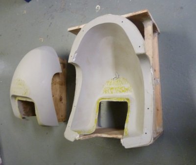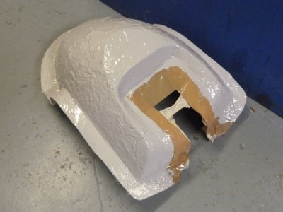 Original dummy cover and clay model removed and clean up mold face, mold edge trim replaced to gel up mold then glass layered for final tool.