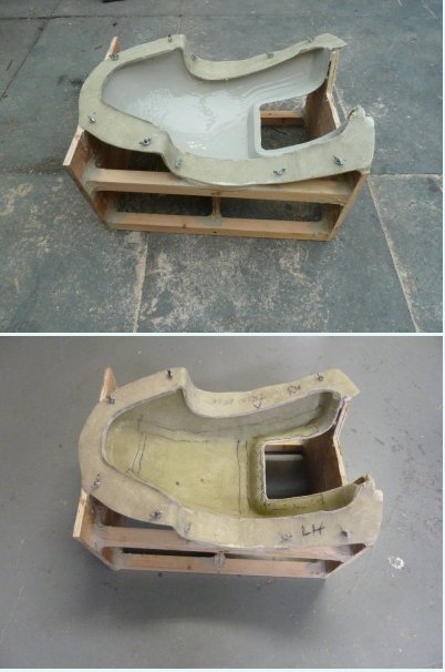 Turn mold over and stripped off edge shuttering, clean up, wax up to make mold edge trim lay up.