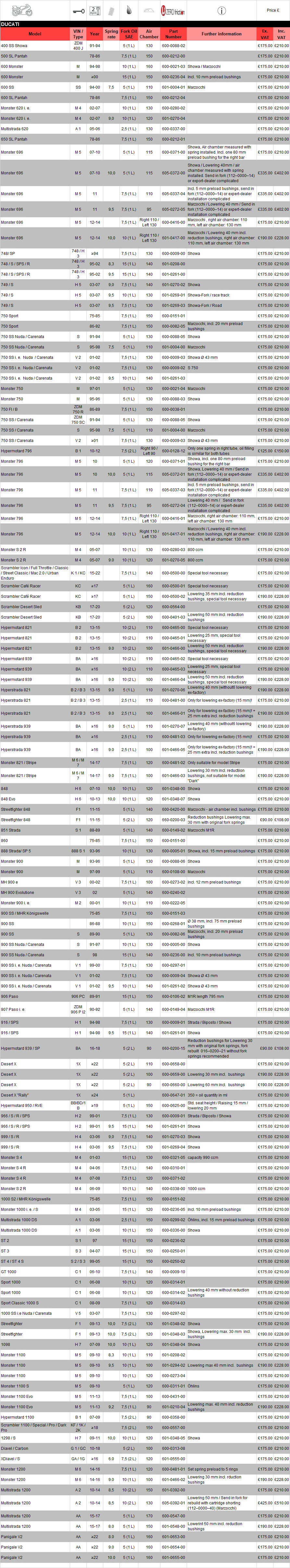 Note: Parts prices do not include carriage cost